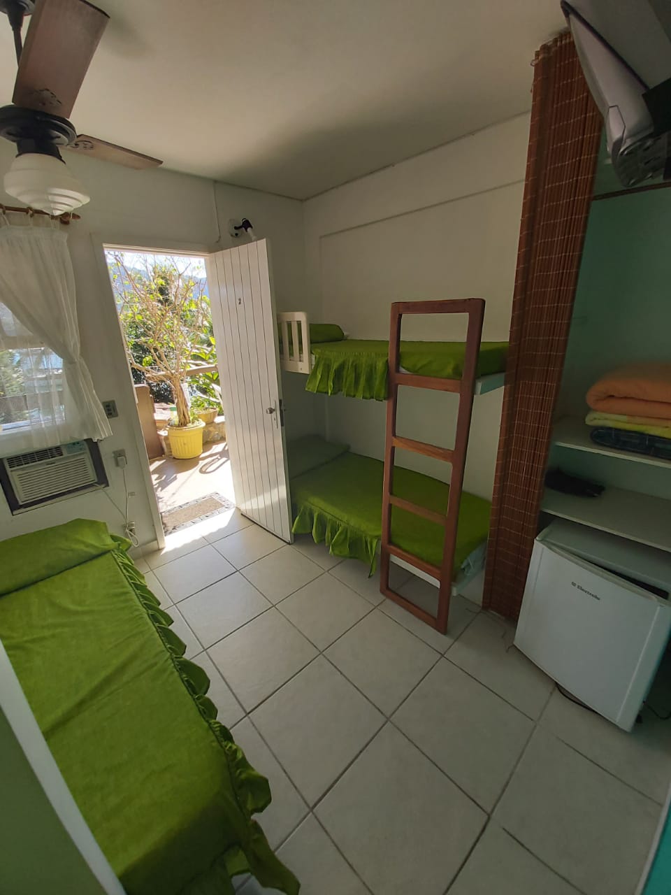 Nossos apartamentos possuem ar condicionado, frigobar, TV à cabo e ventilador de teto. Os aptos superior têm ar condicionado split, secador de cabelo, Tv a cabo, mini copa com torneira e pia, frigobar e varanda.